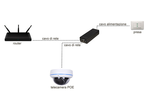 Alimentatore Gigabit POE+ che consente di ridurre al minimo il cablaggio durante l'installazione di dispositivi con supporto POE, come ad esempio telecamere di rete IP, switch, ecc., fino a una distanza di 100 metri. Alcuni dispositivi per funzionare hanno bisogno di una corrente superiore rispetto ai normali 30 Watt trasmessi da un comune alimentatore PoE. Per esempio le telecamere orientabili via IP e altri dispositivi. In tali casi, questo Ž lĘalimentatore perfetto per questa esigenza. L'alimentazione e la trasmissione dati per i dispositivi avviene tramite un unico cavo Ethernet categoria 5E o 6 in rame. In tal modo, la posa di un cavo elettrico separato non Ž piØ necessaria e la rete pu= essere estesa anche in zone prive di prese o cavi di alimentazione. Il trasmettitore Ž pienamente compatibile con lo standard 802.3bt PoE e fornisce una potenza in uscita massima pari a 75 Watt. Plug&Play, non Ž richiesta alcuna configurazione. Supporta tutti i dispositivi POE conformi alle specifiche IEEE 802.3bt come Router, switch, Access Point wireless, telefoni IP, terminali di rete industriali, telecamere IP e altri, telefoni VoIP). Ingresso: 1x RJ-45 (dati). Uscita: 1x RJ-45 (corrente e dati). Uscita dati: 100/100/1000 Mbit/s. Potenza di uscita POE: 75 Watt. Tensione di uscita: 45-54 V DC. Voltaggio input 100V- 240VAC. Intervallo di temperatura: da 0 ¦C a +40 ¦C. UmiditÓ operative 20-85% (senza condensa). L'uscita Ž dotata di limitatore di corrente, fusibile contro i cortocircuiti, riconoscimento automatico e classificazione dei dispositivi. Standard di rete: IEEE802.3i 10 BASE-T, IEEE802.3i 100 BASE-TX, IEEE802.3x flow control, IEEE802.3af /IEEE802.3at, IEEE802.3bt Funzioni processing: Store-and forward, 1000 Mbps Full Duplex, 10 o 100 Mbps Half Duplex. Dimensioni 165x62x38.5 mm Contenuto della confezione: Iniettore, cavo di alimentazione Schuko, manuale.