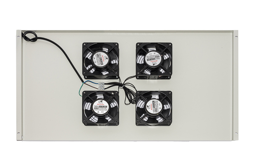 SISTEMA DI VENTILAZIONE PER RACK 19" CON TERMOSTATO E INTERRUTORE DI ACCENSIONE Raffreddano in maniera efficiente l'interno dell'armadio evitando il surriscaldamento dei dispositivi contenuti nell'armadio e quindi preservandoli da usura. Con 4 ventole 220 volt 120x120x38mm. con griglia di protezione. Si installano a soffitto dei mobili rack marchio Link profondi 1000 mm. Colore grigio chiaro (RAL7035). Con cavo di alimentazione mt. 1 con spina tripolare italiana 10A. Le viti di fissaggio sono incluse. Misure 75x41 cm.