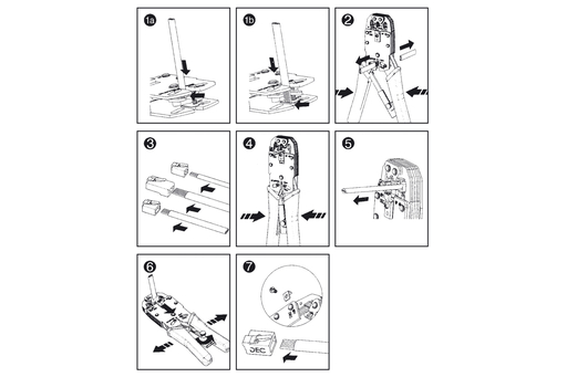 Pinza universale per intestare i connettori da 4, 6, 8 poli, sia schermati che non schermati, sul cavo piatto o rotondo, ad esempio il cavo di rete. Con spelafilo per cavo piatto. Pinza per crimpatura multimodulare, metallo, adatto per 4P2C, 4P4C, 6P4C, 6P6C, 8P8C, incluso spellafili e taglierino La pinza crimpatrice modulare consente una crimpatura facile e veloce dei vari connettori modulari. Grazie alla taglierina e allo spellafili, Þ un attrezzo molto pratico che dovrebbe essere in ogni magazzino. Campo di applicazione: Per la crimpatura delle prese modulari e coassiali e per spelare e tagliare i cavi Diametro interno/esterno del conduttore: 0,3 - 0,7 mm/5 - 15 mm Impugnatura ergonomica.