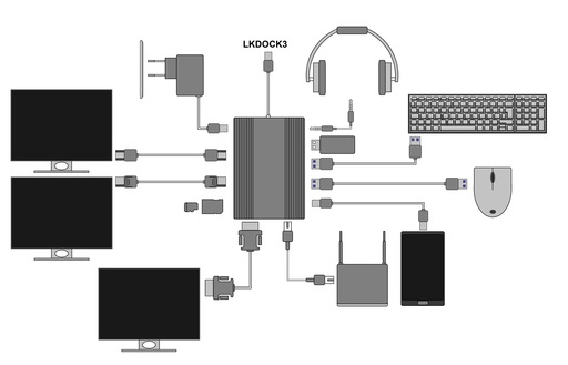 Con 12 porte: Porta USB-C« (Power Delivery) 2.0: Inserire il cavo Type-C« nel dispositivo permette di caricare il laptop fino a 100W. La porta Tipo-C« del notebook deve essere predisposta ad accettare la ricarica. HDMI«: Interfaccia HDMI« integrata 4K 30Hz adatta per schermi del computer, TV Slot memory card SD e micro SD: Gli slot SD e micro SD 2.0 permettono di leggere e trasferire dati facilmente. Displayport 1.4: Interfaccia integrata 4K 60 Hz adatta per schermi di computer, TV VGA: output con risoluzione 1080p@60 ottimale per schermi PC, proiettori e TV. Gestione Dual Head Ethernet: Questa porta permette di connettere un cavo fino a una velocitÓ di connessione Gigabit 10/100/1000 Mbps USB-C«: Identifica la porta dati Tipo-C« del telefono mobile, trasmissione fino a 5 Gbps. USB 3.0: Le 2 porte USB 3.0 permettono una veloce trasmissione e immagazzinamento dei dati, trasmissione della larghezza di banda fino a 5 Gbps. USB2.0: LĘinterfaccia USB 2.0 permette una trasmissione dati fino a 480Mbps, per tastiere, mouse, stampanti ecc. Connettore audio stereo 3.5 mm. Il dispositivo dispone di un connettore da 3.5 mm, adatto per tutti i tipi di cuffie con microfono, o casse.