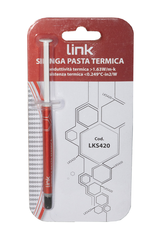 SIRINGA PASTA TERMICA Pasta conduttiva per dissipatori, con 340¦ di picco ha una resistenza molto maggiore di altre paste conduttive in commercio. Grazie alla sua particolare viscositÓ riempie efficacemente lo spazio tra due superfici facilitando la trasmissione del calore e la sua dissipazione. Per esempio si pu= usare tra una CPU e il dissipatore. Alta stabilitÓ e affidabilitÓ. Si pu= applicare a CPU, Led, Chipset e altri componenti per PC. Non danneggia i materiali plastici o metallici, non Ž infiammabile, tossico, corrosivo. Bassa resistenza termica, alta conduttivitÓ e trasferimento termico.