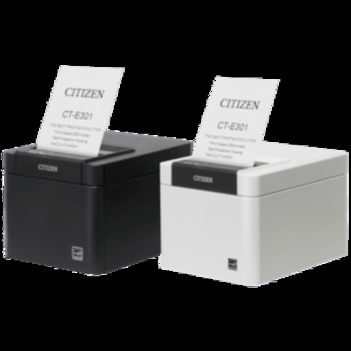 receipt printer, direct thermal, 8 dots/mm (203 dpi), media width (max.): 80 mm, print width (max.): 72 mm, roll diameter (max.): 83mm, speed (max.): 250 mm/s, USB (type B), drawer kickout, cutter, desinfectable housing, Flash: 8 MB, incl.: power supply: (power supply unit, power cable), QSG, colour: black