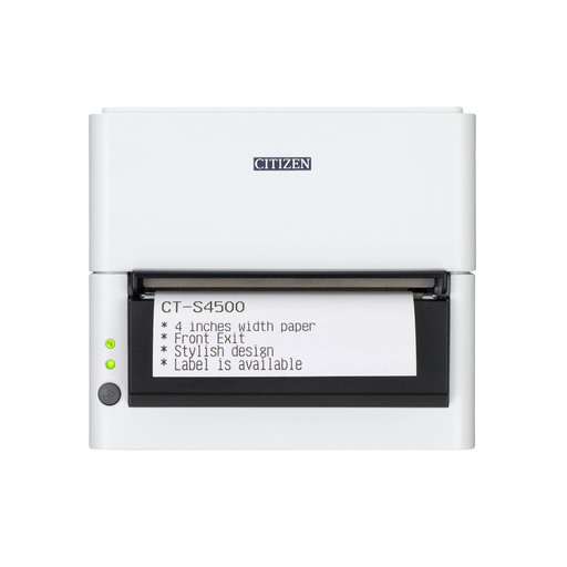 The CT-S4500 is the newest 4 inch addition the Citizen Point-of-Sale family line that features wide format printing to suit all your wide printing needs. Encompassing the Citizen design language with its unique and contemporary design, it fits seamlessly into retail and hospitality environments for the most stylish user. The flat-top design makes hardware integration a breeze in the most tight spaces. Also equipt with a front-exiting mechanism, this printer is protected from foregin containments, liquids, and spills. The CT-S4500 is sure to provide valubale use for wider receipt printing demands.