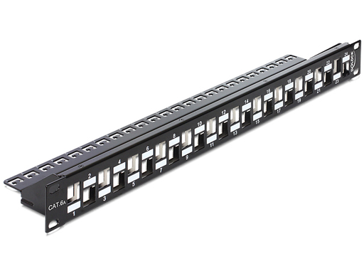 This Patch Panel by Delock can be mounted in a 19 rack. With its standardized dimensions, it is suitable for easy snap-in mounting of 24 Keystone modules.