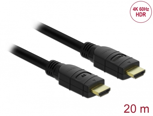 This HDMI cable by Delock can be used to connect devices with an HDMI interface, such as televisions, Blu-ray players, monitors or projectors. By supporting a maximum bandwidth of 18 Gbps, content can be displayed with resolutions of up to 4K Ultra HD (3840 x 2160 @ 60 Hz).