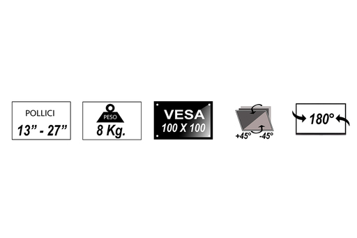 Con Morsa Per 2 Monitor 13-27" Fino 8 Kg 3 Snodi