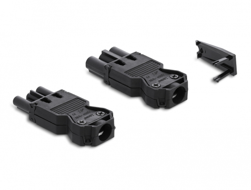 This installation connector set by Delock includes a plug and a socket. It is used for safe connection of two cables. Plug and socket are protected against contact. The included locking slide also prevents unintentional disconnection of the connector. The screw terminals inside are marked with P, N and L.