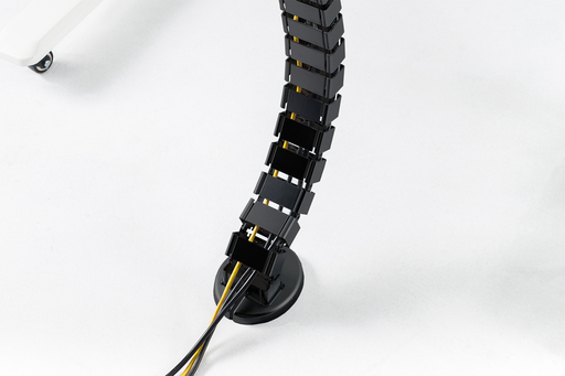 Spirale gestione cavi, colore nero Lunghezza adattabile individualmente con 4 canaline - adatta per tavoli regolabili in altezza La serpentina per cavi Ž il completamente ideale per scrivanie regolabili in altezza e indipendenti e per riporre cavi che vanno dal pavimento al piano della scrivania La canalina per cavi Ž composta da 28 maglie modulari che possono essere rimosse singolarmente dalla canalina per la regolazione individuale della lunghezza - max. 130 cm tra pavimento e piano del tavolo. Una base plastica nel peso metallico fissa il passacavi al pavimento, in modo che la serpentina angolare sia posizionata in modo ordinato e controllato senza aggrovigliarsi e creare intrecci di cavi. La spirale per unĘorganizzazione ottimale dei cavi Ž suddivisa in 4 camere separate attraverso cui si possono introdurre cavi elettrici, cavi di collegamento monitor o cavi audio Con il robusto e flessibile passacavo si crea ordine sulla postazione di lavoro sia in ufficio che in casa. Il passacavo flessibile di DIGITUS« Ž la soluzione ideale non solo per tavoli regolabili in altezza. Le singole maglie si possono rimuovere o aggiungere a piacimento per poter adattare la lunghezza allĘaltezza massima del tavolo. Quando si abbassa un tavolo regolabile in altezza, il passacavo si piega ordinatamente senza aggrovigliarsi o causare ingombro di cavi, mentre la base metallica appesantita mantiene il passacavo stabile sul pavimento. Il fissaggio sul tavolo viene eseguito utilizzando la squadretta collocata all'estremitÓ superiore della serpentina. Si pu= ottenere unĘaltezza massima del tavolo fino a 130 cm. AllĘinterno del passacavo ci sono 4 canaline separate per posare cavi di tutti i tipi in modo ordinato e pulito. Ciascun modulo dispone di unĘapertura flessibile per inserire e rimuovere facilmente i cavi. Mettete ordine sulla vostra scrivania! Dettagli tecnici Materiale: Plastica (ABS), metallo 28 maglie modulari, removibili individualmente Diametro totale del passacavo: 6,6 cm (trasversale) Dimensioni dei 4 passacavi singoli rispettivamente: 3,1 x 1,5 cm Dimensioni: Lungh. 130 x Largh. 6,7 x Prof. 3,5 cm Peso: 760 g Colore: Nero