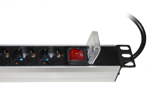 "PRESA MULTIPLA PER ARMADI RACK 19" CON INTERRUTTORE LUMINOSO.\nPer alimentare i dispositivi all'interno degli armadi rack, si intalla sui montanti laterali 19 pollici con le staffe incluse (reversibili).\n\nIl particolare coperchio di protezione dell'interruttore apribile e richiudibile con cerniera impedisce lo spegnimento accidentale della multipresa, senza bisogno di rimuovere il coperchietto tutte le volte che si deve accendere e spegnere la miultipresa.\n\nCon 8 prese prese Schuko tedesche CEE 7/7 16A femmina disposte a 35 gradi e una spina tedesca Schuko16 ampere maschio.\n\nLa disposizione delle prese a 35 permette il collegamento dei cavi spina tedesca a 90\nSpecifiche cavo H05VV-F, sezione 1,5 mm Tipo: MULTIPRESE Multipresa a scomparsa, per installazione su tavolo o su un ripiano. Si può estrarre e riporre nel suo alloggiamento, evitando quindi di occupare spazio sul tavolo, e dando la comodità di avere delle prese a disposizione sul tavolo. Per l'installazione è necessario avere o praticare un foro sul tavolo del diametro di 6 cm Ideale per uffici, o dove si debbano collegare e scollegare cavi di alimentazione rapidamente. "