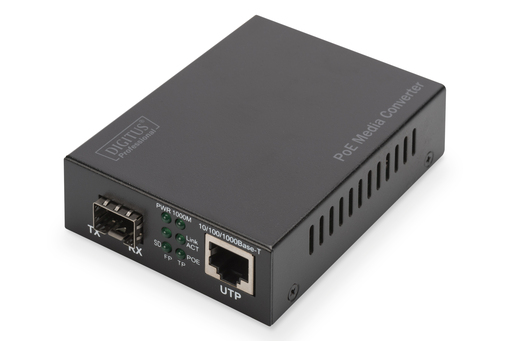 La soluzione di conversione perfetta per la trasmissione ottica dei dati DIGITUS PoE sul convertitore multimediale, SFP, Slot apertura 10/100/1000Base-T a SFP, incl. PSU, 30 W PoE, senza modulo SFP I convertitori multimediali DIGITUS« sono ideali per la migrazione di segnali in fibra ottica. Potete accedere alla tecnologia a fibra ottica e superare diversi chilometri, senza sostituire l'intero cablaggio di rete. Grazie a una vasta gamma di prodotti potete rispondere alle vostre esigenze individuali. Il comando intuitivo garantisce un'installazione semplice e veloce. Un'esperienza pluriennale e un'offerta versatile rendono DIGITUS« un partner affidabile della vostra tecnologia di rete. Alimentatore PoE, PSE Compatibile con gli standard IEEE802.3af e IEEE802.3at Alimentazione PoE attraverso PIN 1,2(V-) e PIN 3,6(V+) Uscita totale massima di 30 watt Compatibile con standard IEEE802.3, IEEE802.3u e IEEE802.3z Riconoscimento cavo automatico - Funzione automatica MDI/MDI-X Rilevamento automatico di full e half duplex Converte i segnali di rete basati su cavo in segnali a fibre ottiche Porte: 1x RJ45, 1x SFP Portata fino a 80 km LED diagnostici per il monitoraggio dello stato e dell'attivitÓ Alimentazione: 48~52V CC Temperatura di esercizio: -20¦C - 65¦C Temperatura di conservazione: -40¦C - 85¦C Dimensioni (mm): 95(L) x 71(P) x 26(A) MTBF: 500.000 ore Modulo SFP escluso Contenuto della Confezione Convertitore multimediale Gigabit PoE, RJ45 / SFP, PSE Guida di avvio rapido Alimentazione
