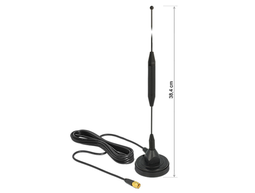 This GSM antenna by Delock allows the usage of different GSM bands outside. It is completely compatible to GSM, UMTS, ZigBee 868 MHz / 915 MHz, DECT, Z-Wave and LoRa 868 MHz / 915 MHz.