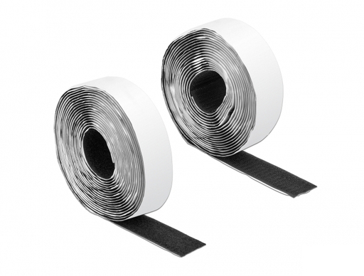 The hook-and-loop tape set consists one roll of self-adhesive hook tape and one roll of self- adhesive loop tape. It can be used as a quick fastener for various applications, e.g. for furniture, components and for bundling individual cables or for various craft projects.