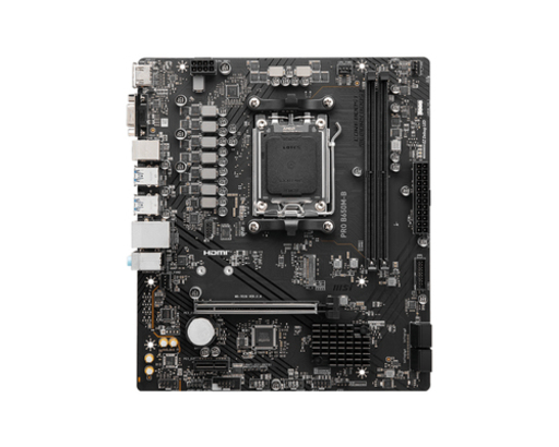 MSI PRO B650M-B. Produttore processore: AMD, Presa per processore: Presa di corrente AM5, Processori compatibili: AMD Ryzen 7 7th Gen, AMD Ryzen 9 7th Gen. Tipi di memoria supportati: DDR5-SDRAM, RAM massima supportata: 96 GB, Velocit di memoria supportate: 6800, 6600, 6400, 6200, 6000, 5800, 5600, 5400, 5200, 5000, 4800 MHz. Interfacce dell'unit di archiviazione supportate: M.2, SATA, Livelli RAID: 0, 1, 10. Tipo di interfaccia Ethernet: 2.5 Gigabit Ethernet, Controller LAN: Realtek RTL8125-BG. Componente per: PC, Fattore di forma scheda madre: micro ATX, Famiglia di chipset per scheda madre: AMD