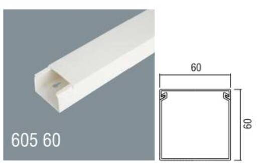 Canalina passacavo coprifili da parete senza separatore, colore bianco RAL9010-9016, verniciabile e tagliabile a seconda delle esigenze.Il coperchio scorrevole rende agevole la gestione dei cavi.Ci si pu= alloggiare qualunque tipo di cavi, dai cavi di alimentazione ai cavi dati.Resistente a prodotti chimici e acidi.In PVC autoestinguente (reazione al fuoco UL94V0 M1).Resiste ai raggi UV ultravioletti.Per fabbriche, negozi, uffici pubblici, officine, uffici commerciali, scuole e ospedali.Produttore certificato ISO9001-2008.Temperatura operativa -25¦ a 60¦ Classe di protezione IP40 Resistenza dielettrica 260kv/cm.Dimensione: mm 60X60, la spedizione comprende un tratto lungo mt 2.
