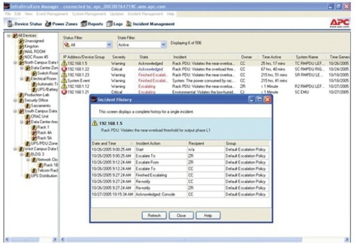 Notifica e analisi degli eventi per la gestione dell'infrastruttura fisica di rete (NCPI). Aumento della sicurezza nella disponibilità della NCPI grazie allaggiunta del modulo di gestione degli incidenti ad APC InfraStruXure Manager. Il modulo aggiunto consente lidentificazione rapida e semplice dellubicazione fisica e dellimpatto logico di un problema, oltre a identificare il responsabile per la soluzione del problema. Aiuta a stabilire e confermare una politica appropriata per lorganizzazione, assicurando che le persone giuste vengano avvertite per risolvere rapidamente i problemi, oltre ad assegnare la priorità corrispondente al livello di urgenza dellincidente. Il modulo di gestione degli incidenti consente di adottare le misure correttive appropriate per ripristinare rapidamente il livello di servizio normale, con un impatto minimo sullattività aziendale.\r\n\r\nAP9435 Caratteristiche generali\r\n- Criteri di estensione personalizzati\r\nGli avvisi vengono gestiti in base ai criteri di estensione e ricevuti in diversi formati.\r\n- Cronologia delle tendenze degli allarmi\r\n- Rapporti cronologici degli incidenti\r\n- Anteprima dei livelli del sistema\r\n- Pianificazione personalizzata delle notifiche\r\n- Livelli di urgenza con priorità assegnata\r\n- Gestione dei carichi di lavoro\r\n\r\nDisponibilità\r\n- Gestione centralizzata\r\nConsente la gestione e il controllo a livello centrale di una rete di dispositivi di grandi dimensioni.\r\n- Amministrazione da remoto\r\nRidurre al minimo i tempi di risposta alle situazioni critiche di infrastruttura della rete con un accesso istantaneo e su richiesta attraverso la rete IP principale, la consolle o gli switch KVM.\r\n- Segnalazione guasti\r\nLa notifica degli eventi in tempo reale riduce notevolmente il tempo di risposta nel caso di situazioni critiche dell'infrastruttura fisica. Permette agli amministratori IT di ridurre il tempo medio per la riparazione, migliorare l'efficienza e massimizzare il tempo attivo.\r\n- Diagrammi di flusso dell'alimentazione\r\nFornisce dati storici relativi a ciascun componente dei sottosistemi APC per individuare trend che potrebbero compromettere la disponibilità di apparati critici.\r\n- Gestione del livello rack\r\nAiuta a prendere le decisioni su dove sistemare i nuovi apparecchi senza sovraccaricare i circuiti delle filiali. Consente di ricevere notifiche sulle modifiche del flusso di alimentazione dei rack.\r\n- Gruppi di segnalazioni\r\nDispositivi di gruppo che permettono al personale addetto di ricevere avvisi che consentono di evitare e correggere i problemi potenziali in modo tempestivo.\r\n\r\nFlessibilità\r\n- Supporto di dispositivi multipli\r\nPer gestire una vasta gamma di dispositivi APC tra cui UPS monofase e trifase, unità di distribuzione dell'alimentazione, apparati di raffreddamento e gestione ambientale nonché altri InfraStruXure Manager Appliance.\r\n- Scalabilità\r\nLa piattaforma estendibile può essere scalata per rispondere ai cambiamenti legati alle esigenze del business e delle esigenze on demand. La gestione di dispositivi aggiuntivi è consentita in base alle esigenze, mentre le applicazioni potenti di facility e service management sono un supporto all'espansione della capacità di gestione del prodotto.\r\n- Autorilevamento\r\nIdentifica automaticamente e gestisce Symmetra PX, PDU, RM PDU, ATS, e unità di monitoraggio ambientale senza interventi manuali con riduzione dei tempi di installazione.\r\n- Realizzazione e aggiornamenti concorrenti\r\nPer diminuire la complessità e il tempo di setup tramite la configurazione di impostazioni o l'aggiornamento del firmware in contemporanea per dispositivi multipli.\r\n- Logging dati\r\nPer individuare situazioni potenzialmente pericolose prima che nascano problemi o per esportare il data log a fini di analisi.\r\n- Report sullo stato delle batterie\r\nQuesti rendiconti contribuiscono a diminuire uno dei rischi principali di fermo macchina fornendo informazioni dettagliate sull'età delle batterie, sul carico, sullo stato di funzionamento ecc. e facilitando la sostituzione tempestiva delle batterie degli UPS.\r\n- Private IP Network\r\nPer accedere a dispositivi multipli da un unico indirizzo IP.\r\n\r\nCosto totale di gestione\r\n- Accessibile via browser\r\nPer visualizzare l'interfaccia utente con un browser. Consente un rapido accesso da qualsiasi punto della rete.\r\n- Allarmi globali innescati dal superamento di soglie predefinite\r\nPer impostare simultaneamente standard relativi ad alcuni parametri selezionati per UPS, PDU e dispositivi di monitoraggio ambientale al fine di tenere sotto controllo la performance del sistema.\r\n- Azioni consigliate\r\nEnterprise Manager fornisce sia una descrizione dettagliata dei problemi nel momento in cui si verificano sia una serie di interventi consigliati per risolvere il problema in questione. Questa caratteristica, unica nel suo genere, riduce le esigenze in termini di formazione e rende più rapida la ricerca guasti in caso di problemi legati all'alimentazione elettrica.\r\n- Wizard di setup\r\nWizard di facile utilizzo rendono più rapida la realizzazione riducendo il tempo di set up.\r\n- Vista della disposizione a pavimento\r\nLintegrazione con InfraStruXure® Designer permette di importare rappresentazioni aeree personalizzate del layout di una stanza per la comodità di navigazione e un miglior monitoraggio, minimizzando i costi e gli errori.\r\n- Integrazione dei sistemi di gestione di edifici\r\nInvio di allarmi e punti dati che consente di gestire dellinfrastruttura delledificio critica da un solo sistema.\r\n- Compatibilità con i sistemi di gestione aziendali\r\nGestione dei dispositivi APC da un unico sistema grazie allinoltro di trap SNMP (eventi) al sistema di gestione aziendale prescelto.\r\n\r\nProtezione\r\n- Security password\r\nProtezione con password selezionabile dall'utente.\r\n- Accesso di sola lettura\r\nUn'opzione di sola lettura consente di condiv