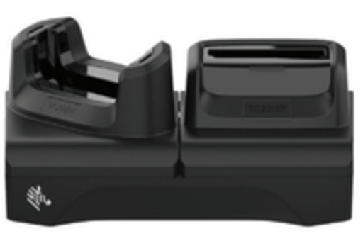 2-Slot Charge-Only Cradle, charges one device and one spare battery, compatible with protective boot (removing shim), order separately: Power Cord, Power Supply, fits for: TC22, TC27