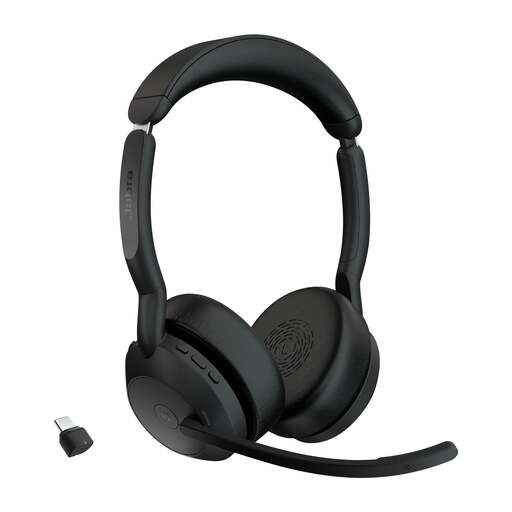 Jabra Evolve2 55 MS Stereo - Cuffie con microfono - on-ear - Bluetooth - senza fili - eliminazione rumore attivata - USB-C - nero - Zoom Certificato, Cisco Webex Certified, Certificato Alcatel-Lucent, Certificato Avaya, Certificato Unify, Certificato MFi,