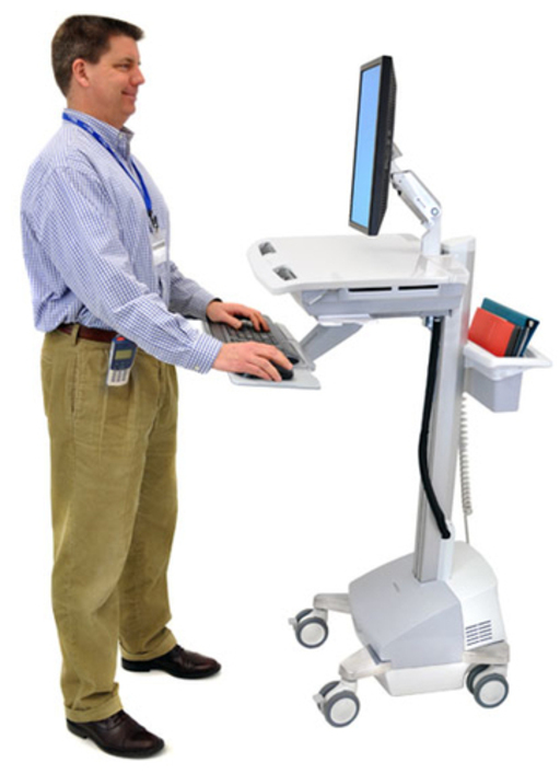 Rimanete produttivi e con la massima libertà di movimento grazie al nostro sistema di alimentazione certificato. Questo carrello per il settore dell’assistenza sanitaria, innovativo, veramente ergonomico e facilmente manovrabile, presenta un meccanismo di regolazione dell'altezza che permette l'uso sia da seduti che in piedi, sistema di posizionamento indipendente del display e un ripiano per tastiera a inclinazione negativa regolabile.\n\nVantaggi\n\n- Il carrello StyleView è manovrabile facilmente sino al punto di utilizzo; risponde velocemente al tocco delle dita dell’operatore e gli permette di concentrare l’attenzione sui pazienti.\n- Il design veramente ergonomico è adatto alla gamma più ampia di operatori sanitari; permette l’uso sia da seduti che in piedi con un singolo e sciolto movimento, promuovendo il benessere e il rendimento dell’operatore.\n- Compatto e dotato di ruote piroettanti, il carrello StyleView si sposta agevolmente su pavimenti lisci o con moquette ed è perfetto per le aree in cui si richiede un ingombro ridotto.\n- L’architettura aperta accetta più configurazioni: notebook chiusi con monitor, CPU e monitor, thin client, tablet, computer “tutto in uno” e futuri potenziamenti hardware.\n- Le superfici sono state trattate con l’antimicrobico ai fini della protezione del prodotto.\n- Il meccanismo di rotazione laterale del display e della tastiera permette un migliore accesso durante l’interazione con i pazienti; il braccio si abbassa per l’uso da parte di operatori con lenti bifocali o con un tablet PC.\n- Affidabile sistema di alimentazione della quinta generazione con batterie facilmente sostituibili. Per tutelare la sicurezza dei pazienti e degli operatori, il sistema di alimentazione è certificato a norma UL/EN/IEC 60601-1 e CAN/CSA C22.2 N. 601.1 M90 nonché in conformità ai limiti sulla corrente di dispersione NFPA; è in corso la COMPLETA certificazione dell’intero carrello.