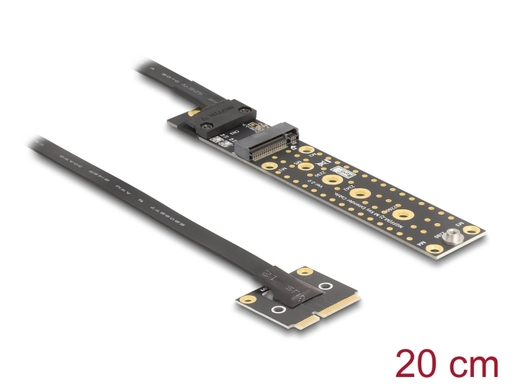 This M.2 to Mini PCIe adapter by Delock enables it to use an M.2 module in a Mini PCIe slot. Due to the integrated cable, the M.2 module can be mounted in an easily accessible place.