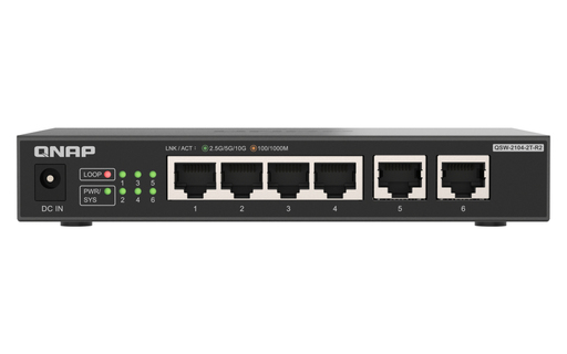 QSW-2104-2T-R2 Switch Multi-Gig non gestito a 4 porte 2,5GbE e 2 porte 10GbE. Upgrade a una rete ad alta velocità a un costo accessibile.