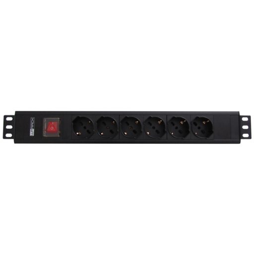 Multipresa rack 19" con 6 prese universali Italiane/Schuko (16A) ruotate a 45 gradi e interruttore luminoso.\n- Struttura in allumio\n- 6 prese 10/16A bipasso/Schuko\n- Installabile a rack 19", occupa 1,5 unita'\n- Interruttore luminoso con coperchio di sicurezza\n- Protezione bambini\n- Voltaggio massimo 250V/3500W\n- Cavo H05VV-F 3G 2,5 mm2 - 2 mt.\n- Spina Italiana 16A (tipo L)