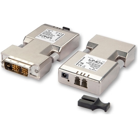 Questo Extender in fibra ottica consente di inviare un segnale video DVI-D fino a 500m con un cavo LC duplex multimodale (50/125-) o fino a 1500m con un cavo single mode (9/125-). Compatibile con le specifiche DVI-D 2.0 Supporta risoluzioni HDTV fino a 1920 x 1200 @ 60Hz / 1080p @ 60 Hz Trasmissione di segnali non compressi Trasmettitore e ricevitore poco pi+ grandi del connettore DVI, pratici e facili da installare