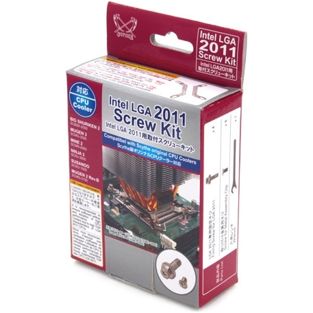 Questo kit composto da 4 perni di fissaggio, 4 viti e una piccola chiave per il serraggio, permette l'installazione dei dissipatori Scythe modelli: Big Shuriken 2, Mugen 3, Mine 2, Ninja 3, Susanoo e Mugen 2 Revisione B sulle nuovissime Cpu Intel LGA 2011.