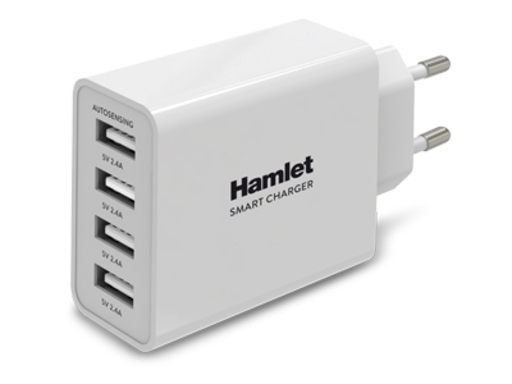 Hamlet USB Wall Charger is a powerful 25W USB wall charger able to charge 4 USB devices such as smartphone and tablet simultaneously. Smart Charge technology automatically recognize the connected device and outputs the amount of current necessary to ensure the fastest charging speed up to 2400mA per port.