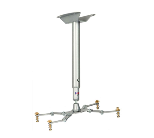 Supporto a soffitto funzionale, robusto, sicuro compatibile con la maggior parte dei proiettori presenti in commercio grazie allo speciale sistema di piedini regolabili ed ai braccetti asolati. Lo snodo centrale, inoltre, consente al piano di appoggio un'inclinazione di ± 15° ed una rotazione di 360°. Ancoraggio del proiettore al supporto mediante quattro appositi braccetti snodabili ciascuno estensibile fino a mm 145 in grado di raggiungere ogni punto di fissaggio del proiettore Allineamento di tutti i braccetti sullo stesso livello grazie allesclusivo sistema di regolazione con ghiera e molla esterna che consente un facile fissaggio del proiettore.
