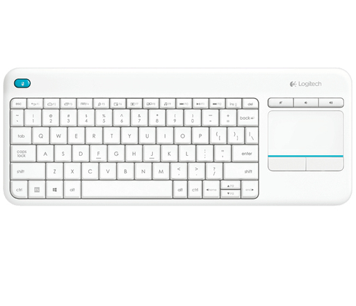 Experience PC-to-TV entertainment the way you like it—from the comfort of your couch. Designed for laid-back control PC-to-TV entertainment shouldn't be hard work. Kick back and navigate your TV-connected computer from the comfort of your couch! Integrated wireless keyboard with touchpad Enjoy seamless control of your PC-to-TV entertainment, without the hassle and clutter of a separate keyboard and mouse. 10-meter (33-foot) wireless range Watch video, browse the web, chat with friends and more, without annoying delays or dropouts. - Responsive, trouble-free connection even in large spaces.\n- Wireless range may vary depending on operating environment and computer setup. Media-friendly TV keyboard You are instantly comfortable using the K400 Plus. Layout is designed for relaxed media interaction. - Easy-access volume controls and arrow keys.\n- Second left-click button lets you navigate and make selections with two hands.\n- Shortcuts for Windows® and Android™ users.\n- Hot keys work right from the box; no configuration required. \nPlug-and-play setup Setting up K400 Plus is a snap. Plug the tiny Unifying receiver into a USB port and start the fun. 18-month battery life You might forget this keyboard needs batteries. - Virtually eliminates the hassle of replacing batteries.\n- Use the on/off switch to extend battery life even further.\n- Battery life was independently tested for two-hour use per day. Actual battery life will vary with use, settings and environmental conditions. Works with multiple operating systems Designed for use with Windows 7, Windows 8, Windows 10 and later, Android 5.0 or later, and Chrome OS. Customizable control Use K400 Plus right from the box, or personalize key and touchpad settings with Logitech Options software.