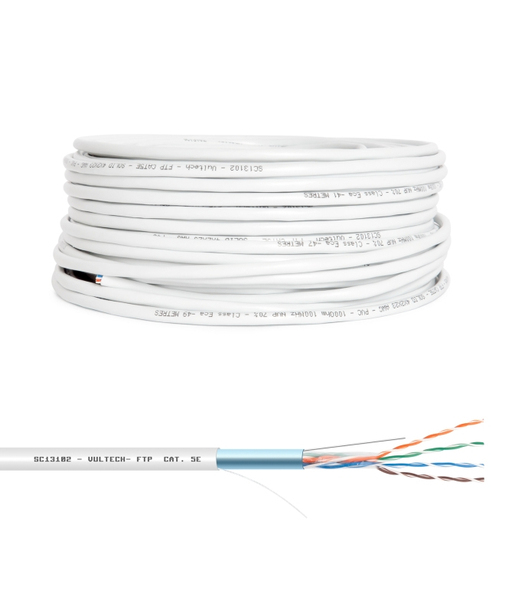 Completamente schermata (FTP) e totalmente compatibile con gli standard di Categoria 5e, la matassa VulTech® 100 metri è realizzata con conduttori rivestiti in alluminio e rame a traccia che permettono ripetute piegature senza rischi di danneggiamento, prolungando così la vita del cavo.