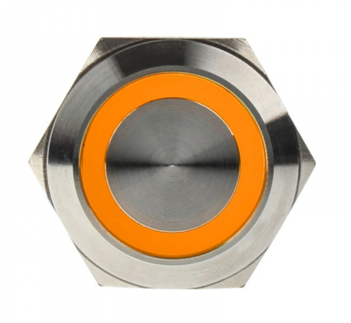Pulsante a Pressione DimasTech®, 25mm ID, Colore Corona Led/Illuminazione Arancione, Alimentazione Corona Led 12V, AC/DC, Vita Utile 40.000 Ore, Azione Momentanea