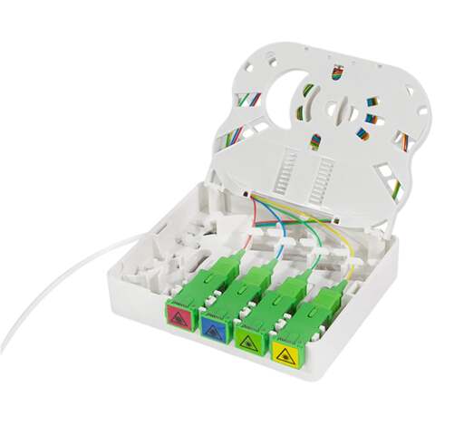 Set di connessione FTTH compatto per montaggio a parete o su guida DIN. Questa soluzione, preassemblata con cavo di installazione in fibra ottica e pigtail, è ideale per realizzare connessioni con fibra ottica (FTTx). Il cavo di installazione è su un rotolo di cartone, le trecce sono già installate nella presa, pronte per il collegamento.