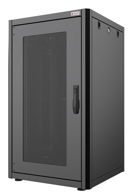 Solido armadio rack a pavimento caratterizzato da una struttura solida e robusta e un design moderno dalla linea essenziale con profili arrotondati che non trascura la praticità nell installazione. Dotato di doppi montanti anteriori e posteriori regolabili, di porta e pannelli facilmente asportabili e di tetto provvisto di feritoie per favorire il ricircolo dell aria rappresenta una soluzione versatile e adattabile a qualsiasi necessità nella realizzazione di una rete. L ampia gamma di accessori offerti e compatibili con questa linea di armadi consente di soddisfare tutte le esigenze di installazione.