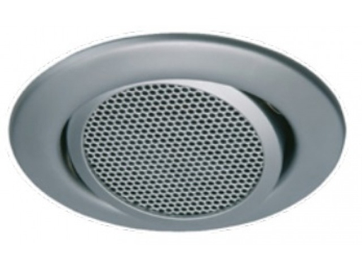 SpeakerMount is a high-quality speaker available in white or matt chrome finsih. It is directly connected to the camera housing via a two-wire cable without an additional power supply unit being needed. In connection with the microphone that is integrated into the sensor module of every S14D/S15D, it turns those cameras into a two-way communication system. The tiltable speaker is integrated into the HaloMount and can be mounted easily and neatly in ceilings or walls (not suited for unprotected outdoor usage because of humidity!). - Integrated speaker incl. mount, white or matt chrome\n- Suitable for the installation in ceilings or walls, indoor (IP20)\n- Compatible with all FlexMount cameras (mono and dual)\n- Direct connection via two-wire cable, no additional power supply unit needed\n- Inner ring with speaker can be tilted up to 20° Technical data\n- Temperature rage: 0 to +60 °C\n- IP code: IP20\n- impedance: 8 ohm\n- Speaker material: metall with perforated plate covering\n- Connection type: two-wired strand, clamp included