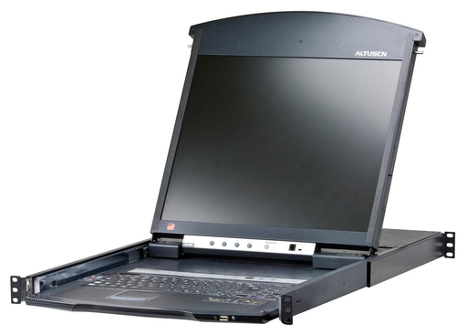 The KL1516Ai Dual Rail LCD KVM Switch is a control unit that allows secure access up to 16 computers from a single KVM (keyboard, video, and mouse) console. It consists of an integrated LCD monitor, keyboard, and touchpad in a 1U rack-mountable retractable sliding housing.