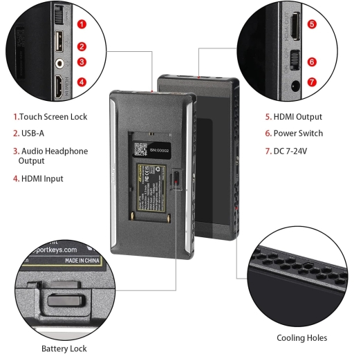 Design compatto e leggero con alimentazione flessibile?Schermo IPS da 5,2" con 400 PPI, 600 nits di luminosità e angolo di visione di 178°, racchiuso in un corpo da soli 165 g. Compatibile con batterie S0NY NP-F e CAN0N LP-E6 (Nota: la batteria non è inclusa).