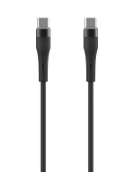 USB-C to USB-C cable made of flexible silicone with TPE connectors. Supports fast data trans- fer and charging with power outputs 100W and 5A.