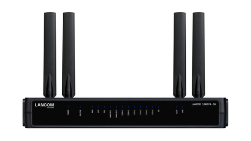 Thanks to high-performance 5G technology, the LANCOM 1803VA-5G is ideal for intelligent backup scenarios, primary operation, or parallel operation in active/active mode with other access types. Highest availability and best bandwidths for the use of real-time applications such as video streaming or augmented reality (AR) in combination with lowest latencies make the branch router the ideal node in environments with high data traffic.