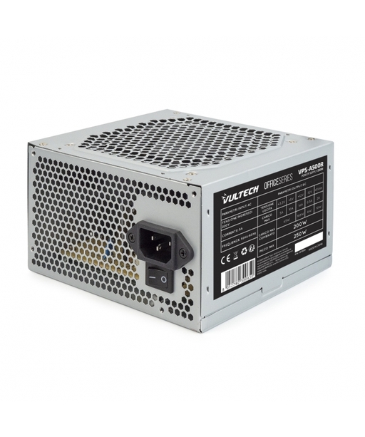 Alimentatore VulTech® VPS-A500R Serie Office da 250W. Indicato per PC con configurazioni impostate per un uso domestico o da ufficio. Supporta perfettamente le normali attività della macchina e garantisce un alto indice di affidabilità nel tempo.