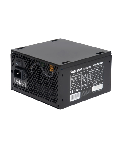 Alimentatore VulTech® VPS-A600ER Serie Essence da 600W. Indicato per PC con configurazioni impostate per un uso domestico o da ufficio. Supporta le normali attività della macchina e garantisce un alto indice di affidabilità nel tempo.