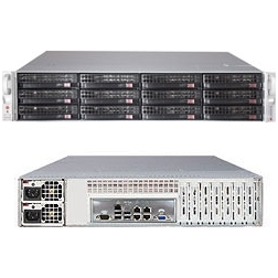 SuperServer, 2U Rackmount, 2xLGa 2011, 16x 240-pin DDR3 DIMM, 12x 3.5" Hot-swap SAS/SAta HDD trays - Dual socket R (LGa 2011) supports Intel Xeon processor E5-2600 and E5-2600 v2 family - Up to 1TB ECC DDR3, up to 1866MHz; 16x DIMM slots - 5x PCI-E 3.0 x8 slots (Low-profile) - Intel i350 GbE Controller; 4x ports - 12x 3.5" Hot-swap SAS2/SATA3 & 2x rear 2.5" Hot-swap HDD Bays (opt) - Onboard LSI 2308 IT mode - Single JBOD expansion port - Server remote management: IPMI 2.0 / KVM over LAN / Media over LAN - 3x Heavy duty PWM fans - 920W Redundant Power Supplies Platinum Level (94%)