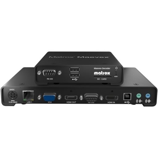 Distribuzione AV-over-IP conveniente, Full HD e a bassa larghezza di banda\n\nLa soluzione di distribuzione AV-over-IP Matrox Maevex include i codificatori e i decodificatori Maevex 5100 Series. Questi dispositivi sono in grado di estendere e registrare audio e video 1080p60 su una rete IP standard a velocit di bit ridotte definite dagli utenti e garantiscono una qualit eccellente e un consumo minimo della larghezza di banda della rete. Il codificatore Maevex registra e distribuisce flussi audio e video di alta qualit e utilizza lo standard di compressione video H.264. in grado di trasmettere flussi ai decodificatori Maevex o a dispositivi e PC che supportano i protocolli di rete richiesti. anche in grado di registrare su unit NAS o unit di rete condivise. Il robusto software Matrox PowerStream incluso con l'hardware e consente di individuare, gestire e regolare in remoto la rete di dispositivi Maevex. Tramite questo software gli amministratori possono definire pi parametri per i flussi e bilanciare la qualit e il consumo della larghezza di banda. anche disponibile l'API Maevex che consente ai programmatori di integrare le funzionalit correnti nelle applicazioni esistenti, oppure di creare nuovo software simile a PowerStream per soddisfare esigenze specifiche.\n\nCodifica:\n\n Estensione/registrazione di video e audio fino a Full HD 1080p60 e 1920x1200\n Compressione H.264 per la distribuzione AV-over-IP di alta qualit e a bassa larghezza di banda\n Supporto per formati standard e wide-screen e diverse risoluzioni\n Ridimensionamento dei flussi prima della distribuzione per un minore consumo della larghezza di banda\n Supporto per HDMI o audio analogico\n Codifica aperta per la decodifica di software di terze parti (ad es. VLC)\n\nRegistrazione:\n\n Registrazione fino a 1080p60/1920x1200 su unit NAS o unit di rete condivise\n Controllo della frequenza e della durata di registrazione\n Pianificazione della data e dell'ora di inizio delle sessioni di registrazione\n I nomi dei file registrati definiti dagli utenti includono un timestamp per una pi semplice gestione dei file\n\nGestione della rete:\n\n Funzionamento su reti Ethernet 100/1000Mb standard\n Individuazione e rilevamento automatico delle unit Maevex sulla subnet (necessario server DHCP)\n Supporto per indirizzo IP statico e modalit full/half-duplex\n Supporto per CBR, VBR\n Controllo della velocit di bit della rete (100 Kbps 25 Mbps)\n\nFailsafe:\n\n Riproduzione di contenuto preregistrato dal decodificatore di caso di problemi di rete o se il codificatore interrompe la distribuzione del flusso (ad es. in caso di mancata corrente)\n Ritardo programmabile per l'attivazione della funzionalit failsafe\n\nAPI Maevex:\n\n Integrazione delle funzionalit di Maevex nel software di controllo nuovo o esistente\n Basata sull'intuitivo linguaggio di programmazione .NET\n Fornita a sviluppatori selezionati (costo zero/senza licenza)\n\nSoftware di controllo PowerStream:\n\n Gestione in remoto della rete di dispositivi Maevex da diverse postazioni\n Pratico accesso a indirizzo IP, velocit in bit e altre informazioni importanti\n Messa a punto dei parametri di codifica/decodifica e regolazione delle velocit di bit\n Ridimensionamento e ritaglio dei contenuti per adattarli ai diversi dispositivi di uscita\n\nAltri vantaggi:\n\n Collegamento dei decodificatori tramite daisy-chain ed estensione della rete attraverso uno switch di rete integrato\n Resistenza ai guasti: funzionalit di alimentazione, rete e ripristino automatico dei dispositivi\n Controllo RS-232 full duplex (point-to-point)\n Design robusto, affidabile e a basso consumo energetico\n Pass-through in tempo reale locale e anteprima della certezza sul codificatore\n Accesso utente controllato tramite PowerStream da PC protetto\n Spie LED dettagliate per una risoluzione dei problemi semplice ed efficace\n Bitmap personalizzabile per lo splash screen di codificatore/decodificatore\n Supporto per il montaggio su rack opzionale