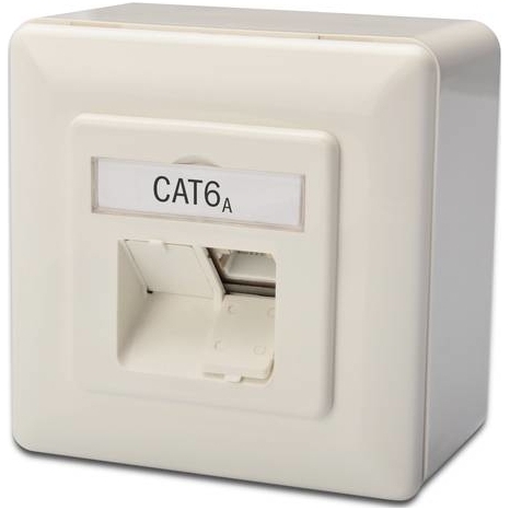 Descrizione La scatola di collegamento dei dati CAT 6A di DIGITUS« sono compatibili con il design di tutti i commutatori standard. Sono certificati ai sensi di CAT 6A ANSI/TIA 568 e ISO/IEC 11801, EN 50173 e hanno 2 prese RJ45 schermate. L'installazione del cavo avviene tramite i moduli LSA, codice del colore secondo EIA/TIA 568 A & B.