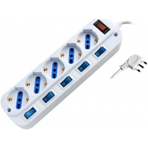 • Provvista di 5 interruttori indipendenti per attivare/disattivare ogni singola presa