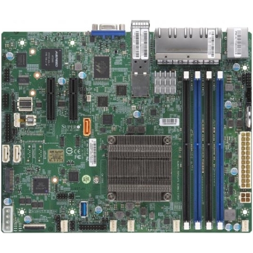 Key Features Intel Atom Processor C3558, Single Socket FCBGA1310 supported, CPU TDP support 16W System on Chip Up to 256GB Registered ECC DDR4-2133MHz, Up to 64GB Unbuffered ECC/Non-ECC DDR4-2133MHz; in 4 DIMM slots Expansion slots: 1 PCI-E 3.0 up to x2 (Slot 6 or 7 option)* Flexible I/O - software configurable in BIOS M.2 Interfaces: 1 B-Key 3042/2280 supports PCI-E 3.0 x2/SATA/USB 8x 1GbE RJ45 LAN ports 2x 1GbE SFP LAN ports Up to 3 SATA3 (6 Gbps) ports via SoC* Flexible I/O - software configurable in BIOS I/O: 1 VGA, 1 COM (1 via header), TPM header 3 USB 3.0 (2 rear, Type-A) 2 USB 2.0 (2 via headers) Intel Quick Assist Technology Supports 12V DC power input
