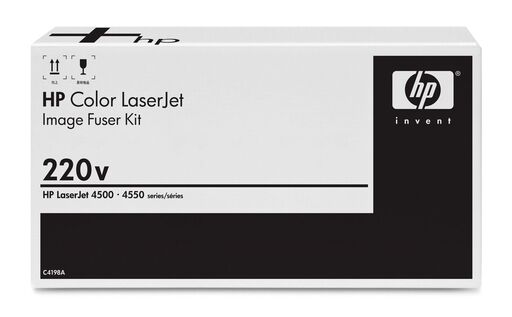 Il kit fusore per stampanti HP Color LaserJet C4198A per le stampanti della serie HP Color LaserJet 4500/4550 (220V) include un fusore, quattro rulli per carta e due filtri dell'aria. Il rendimento è di 100.000 pagine in bianco e nero o 50.000 pagine a colori (calcolo basato su una copertura media del 5%).