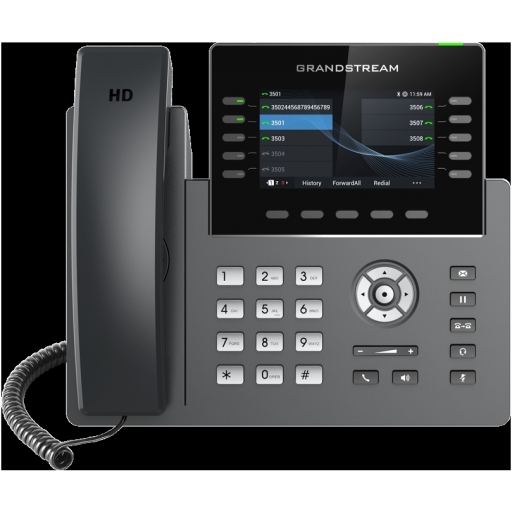 GRP2615 è un telefono VoIP carrier-grade di fascia alta progettato con provisioning zero-touch per la distribuzione di massa e una facile gestione. Supporta 10 linee e 5 account SIP con un design elegante e una suite di funzioni di nuova generazione, tra cui Wi-Fi integrato, supporto Bluetooth, 40 tasti multifunzione (MPKs), un modulo di estensione disponibile, due porte Gigabit e altro ancora. Questo dispositivo è dotato di un LCD a colori da 4,3 pollici con frontalini intercambiabili per consentire una facile personalizzazione del logo. La serie GRP include funzioni di sicurezza carrier-grade per fornire sicurezza a livello aziendale, tra cui avvio sicuro, doppio firmware e archiviazione dati crittografata.